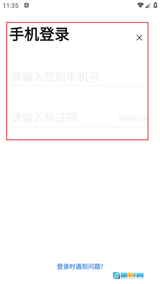 进入手机登录界面后,首先要输入手机号码,接着点击【获取验证码】按钮并填写收到的验证码,所有信息都填写完毕后就能完成登录操作了。