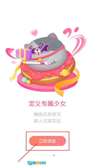 进入应用引导页后,能了解到它主打“定义专属少女”,提供优质款式以及真人试穿实拍,点击【立即体验】按钮就能进入应用主功能区。