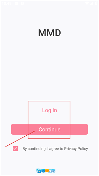 界面显示【MMD】标识,在勾选同意【Privacy-Policy】选项后,点击【Continue】按钮,就能进入应用后续的功能界面。