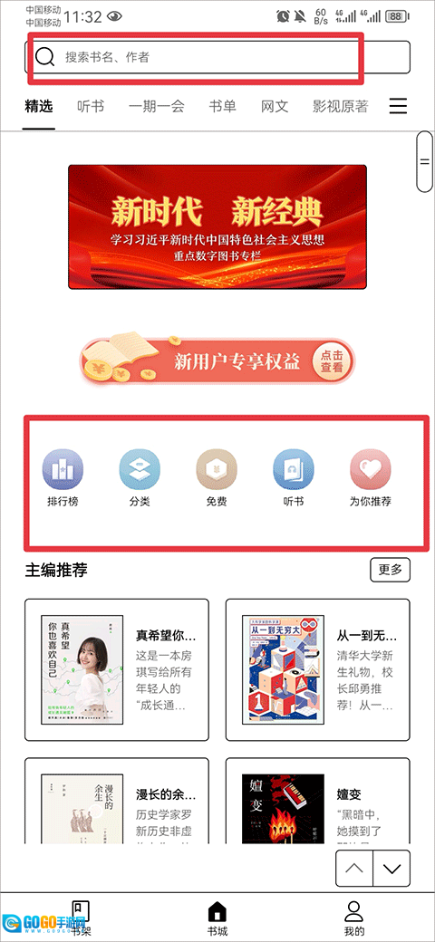 在书城页面里,你既可以通过排行榜、分类、书单等方式筛选心仪的书籍,也能直接搜索书名来查找想要的书。