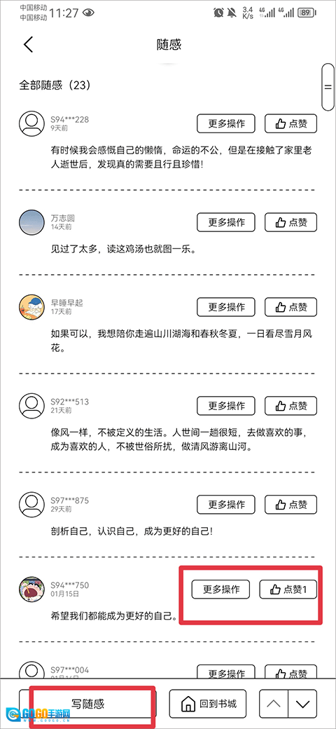 在读完这本书之后,你既可以写下自己的阅读随感,也能对其他读者分享的随感进行点赞、评论之类的互动。