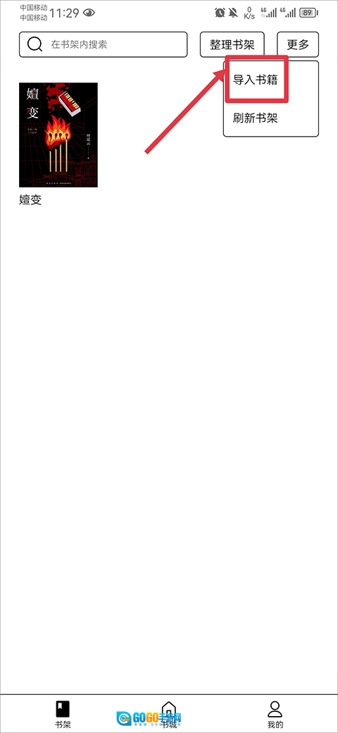 在书架里,你能随时查看自己添加的书籍,还可以把手机本地的书籍导入进来。