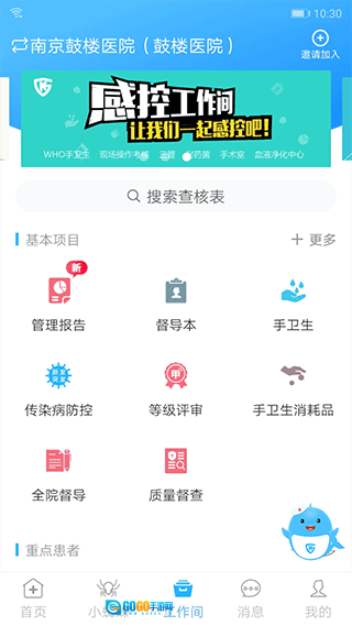 感控工作间是专为医疗机构打造的一站式医院感染防护云平台,它提供督导本、手卫生、全院督导、职业防护等基础功能模块。用户可随时查看机构内人员的卫生处置状况,系统还会实时更新相关信息,确保用户能及时获取最新、最全面的内容。此外,该平台也聚焦于在线医院感染科的预防与控制工作,助力医务人员开展手卫生、多重耐药菌感染防控、导管相关感染预防控制、手术部位感染预防控制等方面的干预与培训。
