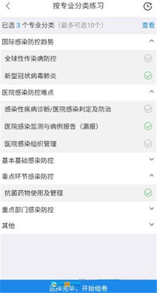 点击【练习】按钮,勾选对应的专业分类选项,然后点击【选择完毕,开始组卷】按钮。