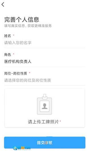 您只需依次输入姓名、角色与岗位信息,上传工牌照片后点击【提交审核】按钮,即可完成操作。