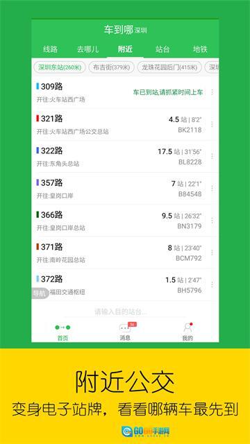附近站台功能:直接展示周边公交站点,以及途经这些站点的所有公交线路的实时到站信息,方便用户了解哪辆车最快到达。