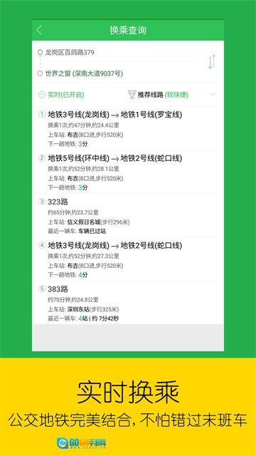 换乘查询功能:只需输入目的地,系统便会提供多种换乘方案,同时还能显示公交与地铁的实时运行动态。