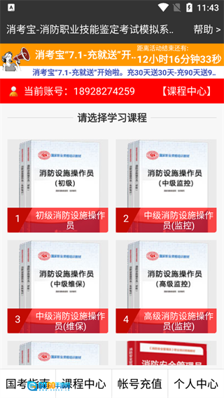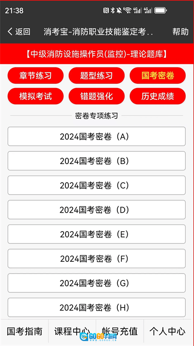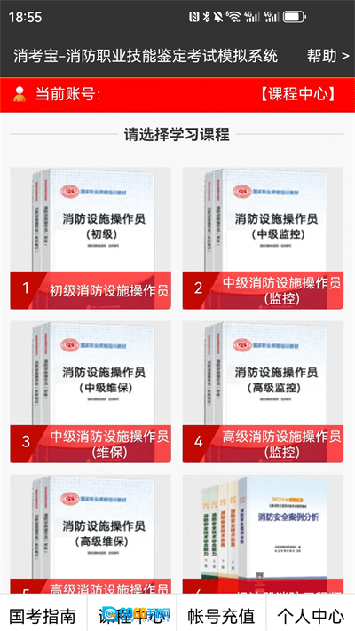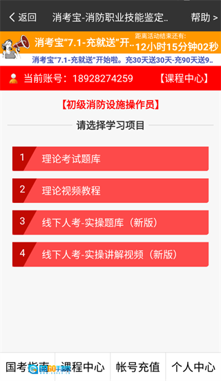 打开消考宝正版App,能看到【国考指南、课程中心、帐号充值、个人中心】这四大板块,点击你想要学习的内容即可。