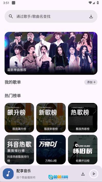 打开配享音乐应用,点击首页顶部的搜索栏,输入歌曲名称、歌手姓名或者歌词相关的关键词。