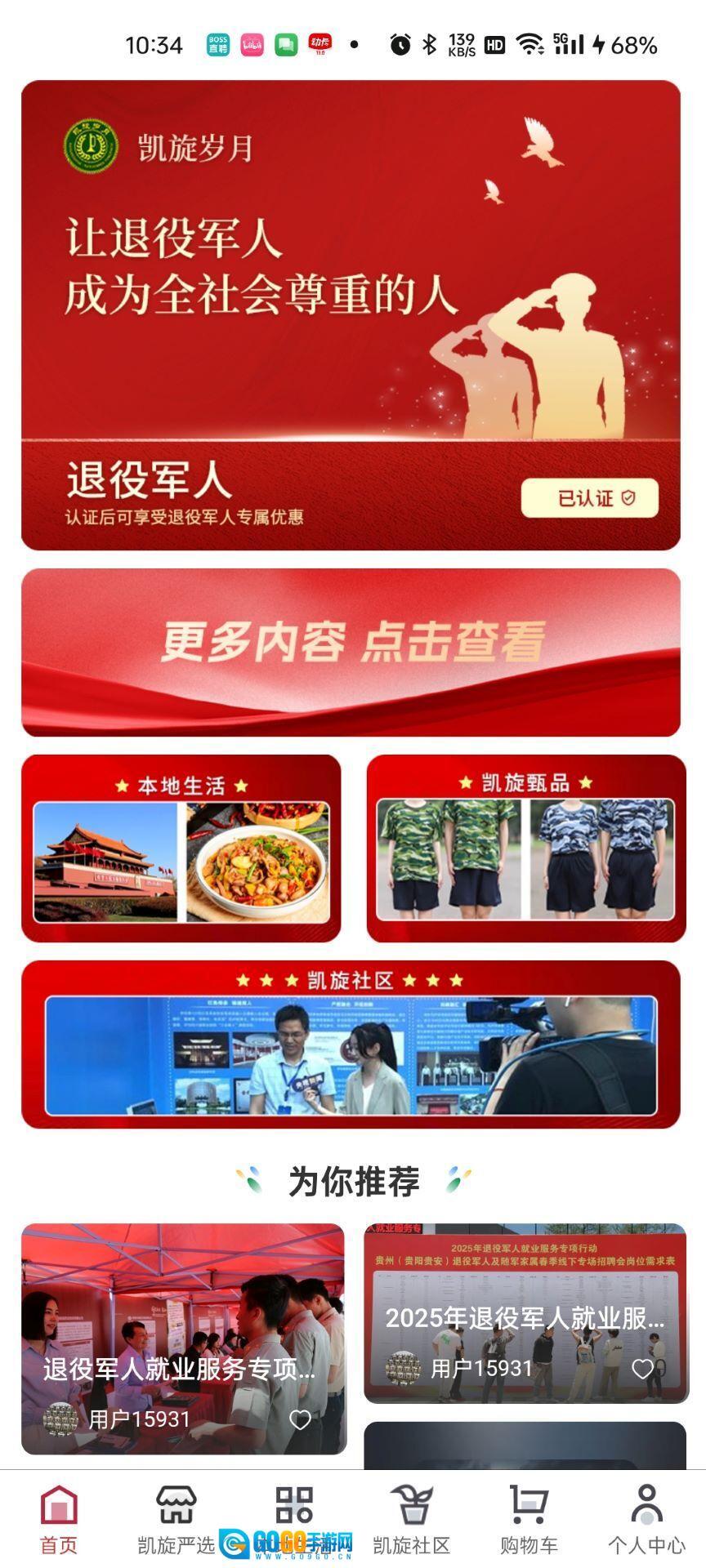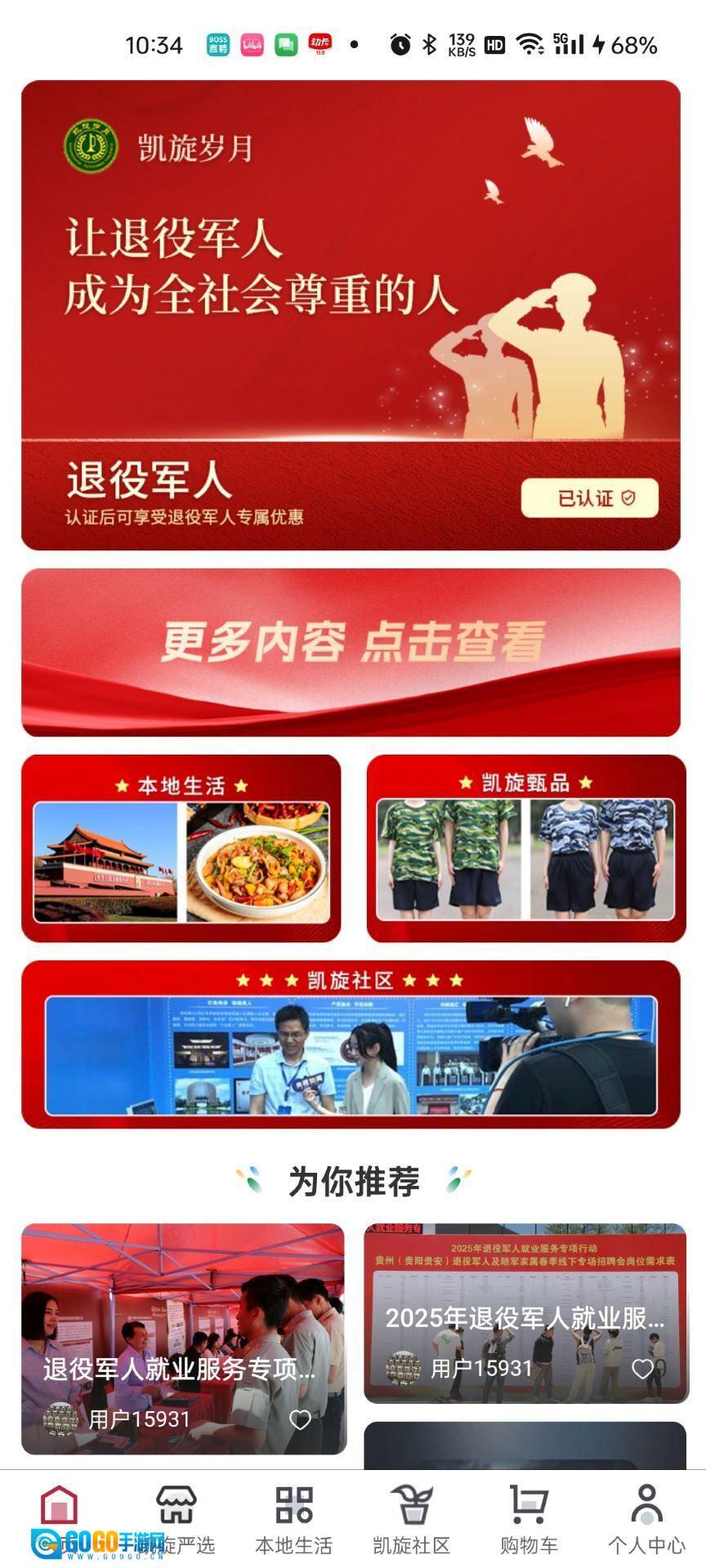 凯旋岁月是一款专门面向退伍军人和拥军群体的综合服务平台,致力于为用户提供全方位的支持与服务。平台不仅能让用户享受到线上购物的便捷体验,还提供了丰富多样的线下活动选择,助力退伍军人更好地融入社会生活。用户可以在社区里与战友互动交流,分享各自的军旅经历,参与各类公益活动,重温那份宝贵的战友情谊。