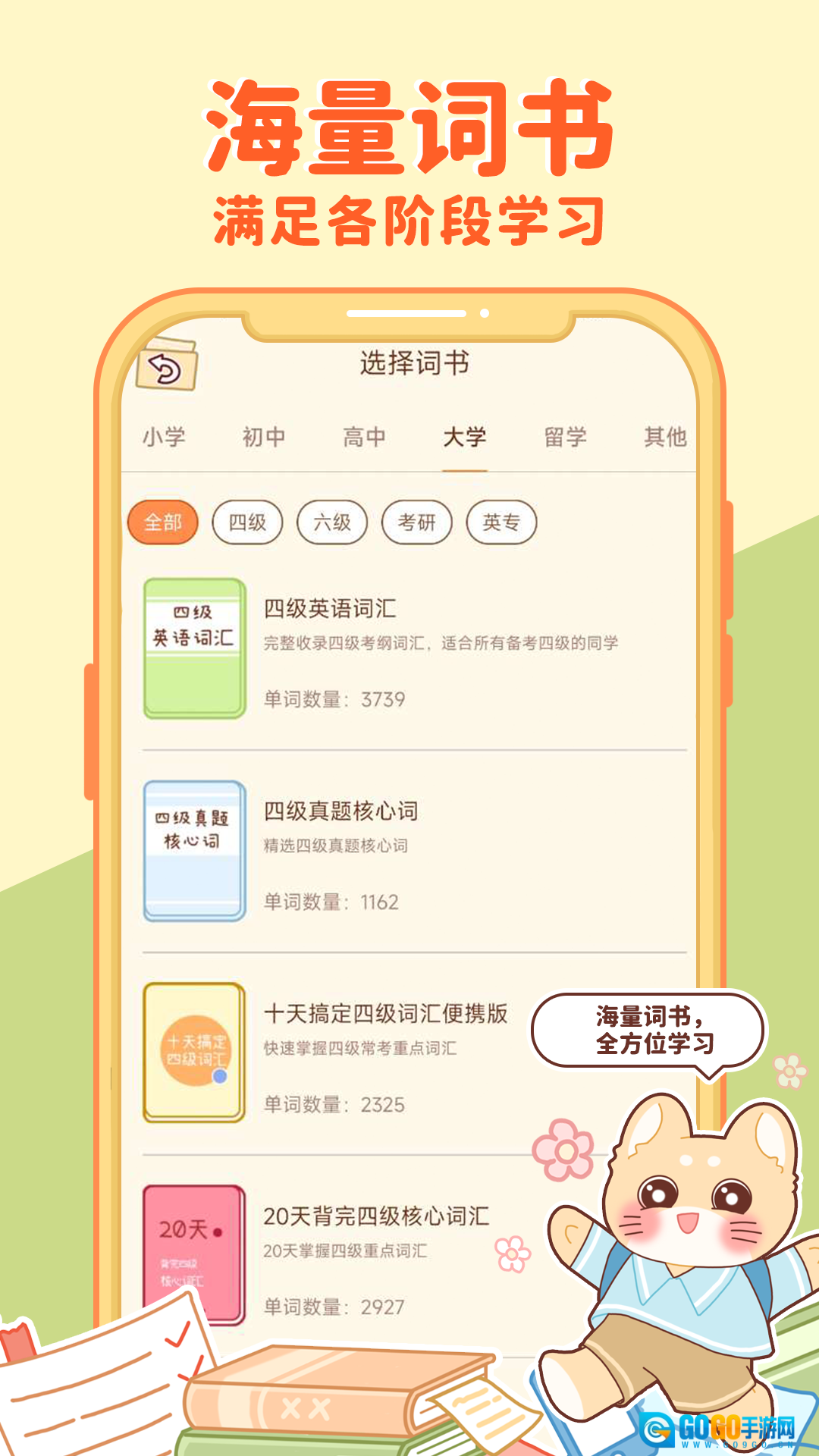 喵喵单词拥有海量词汇库,涵盖从基础到高级的各类单词,能满足不同学习阶段的需求。