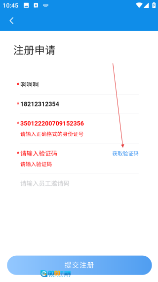 填好验证码后,点击页面底部的【提交注册】按钮,就能提交注册申请了。