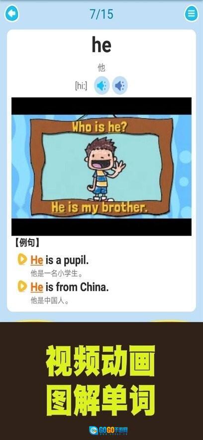 支持单词趣味学习模式,每个单词都配有图片、视频,以及与教材难度匹配的例句和试题,趣味学习,轻松易懂。