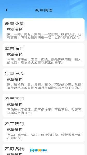 1、互动式学习:运用趣味闯关、成语接龙、填空游戏等多元互动方式,使用户在轻松愉悦的氛围里学习成语,增强学习主动性。