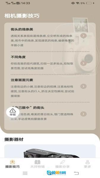 2、这是一个摄影知识储备丰富且具备多功能特性的学习平台,可供用户随时在线开展自学活动。