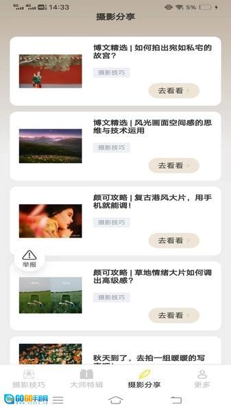 1、从摄影入门知识到各类风格的拍摄技巧,再到后期修图方法,搭建起由浅入深、环环相扣的知识体系,助力用户有条理地掌握摄影技能。