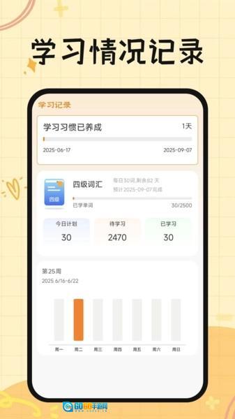 1、可以实时追踪用户的学习进程,涵盖已学习单词的数量以及掌握情况,当用户在某一阶段学习进展迟缓时,例如接连数日未达成学习计划。