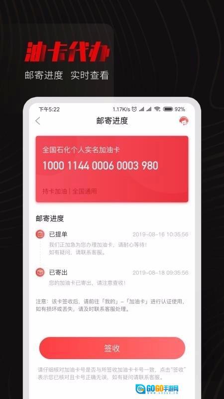 油卡代办后直接邮寄到家,办理进度随时能查询,还能实时掌握油卡的运输动态。