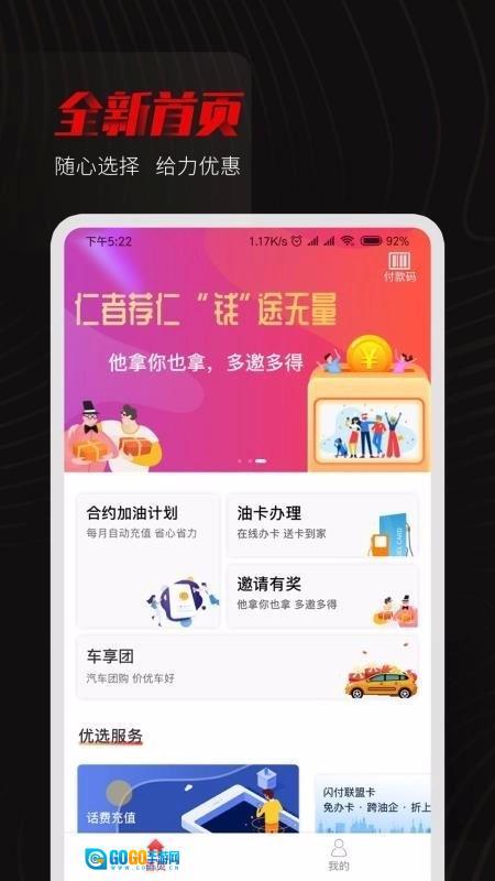 全新首页可自由选择,为你带来惊喜福利,尽享超值加油、购车优惠;