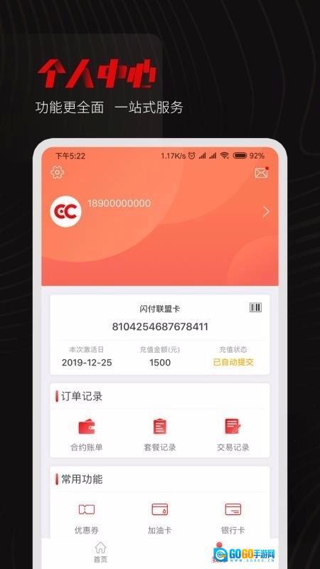 个人中西全新升级,功能更完善,为用户提供一站式加油充值服务。