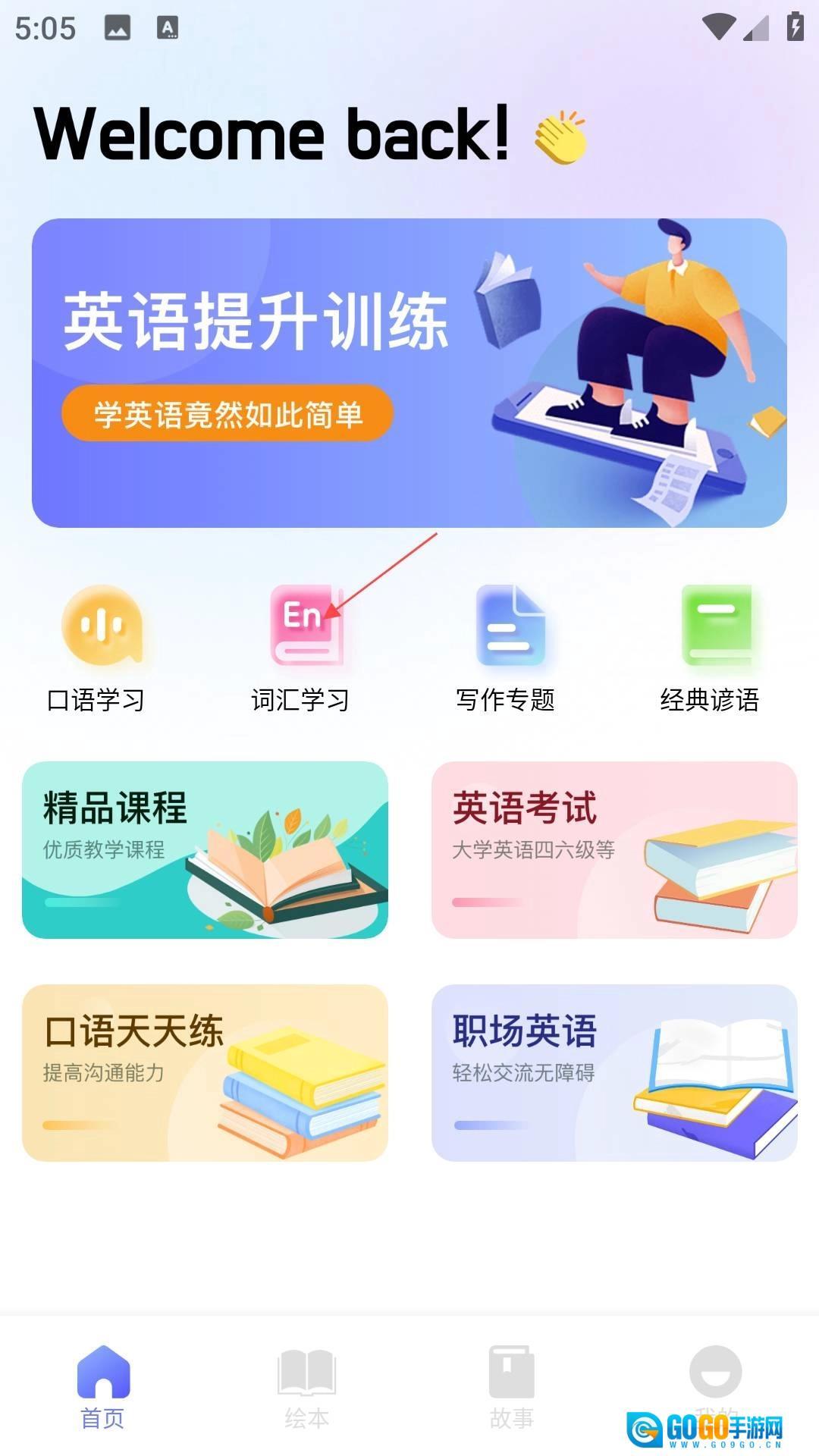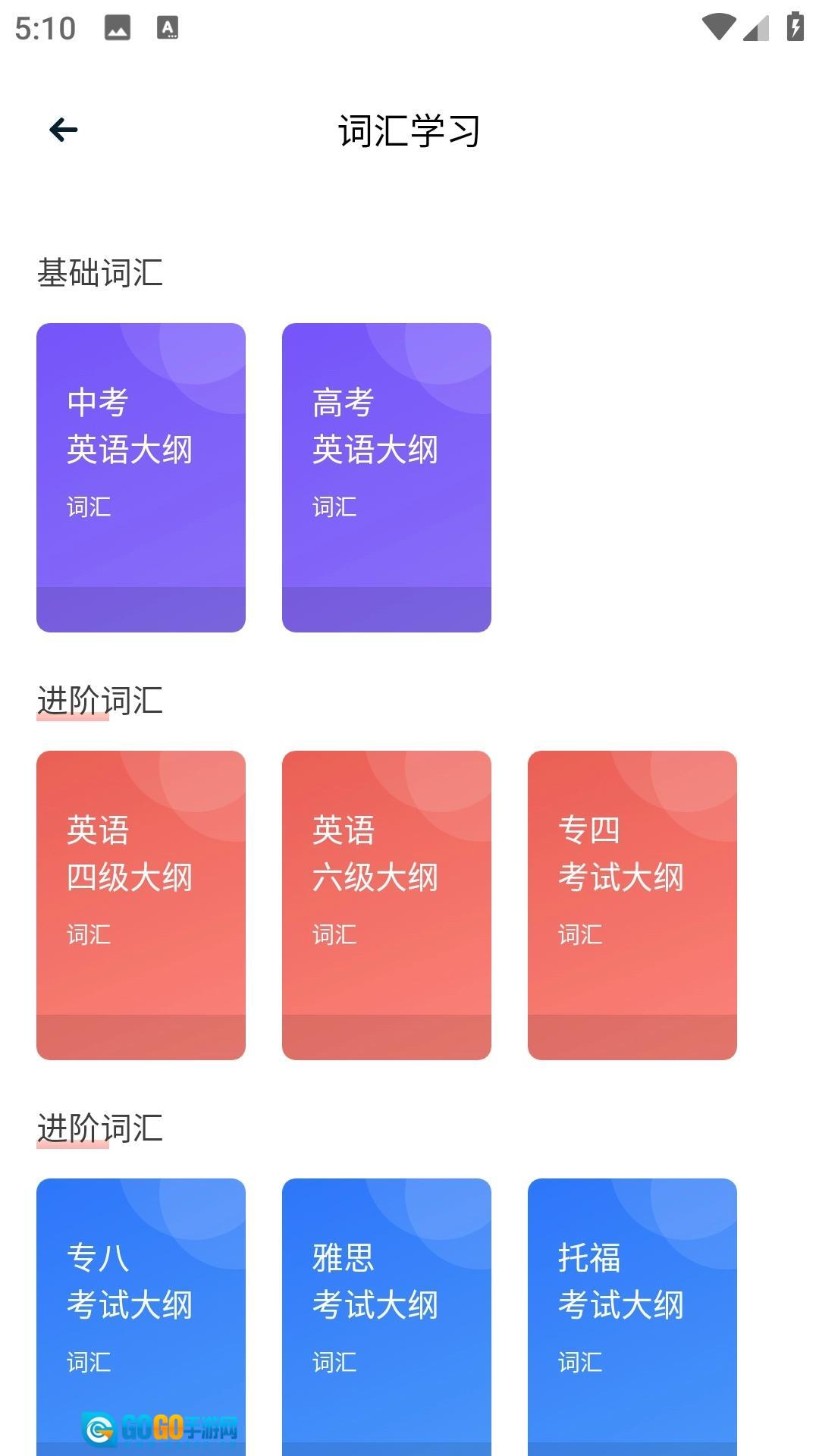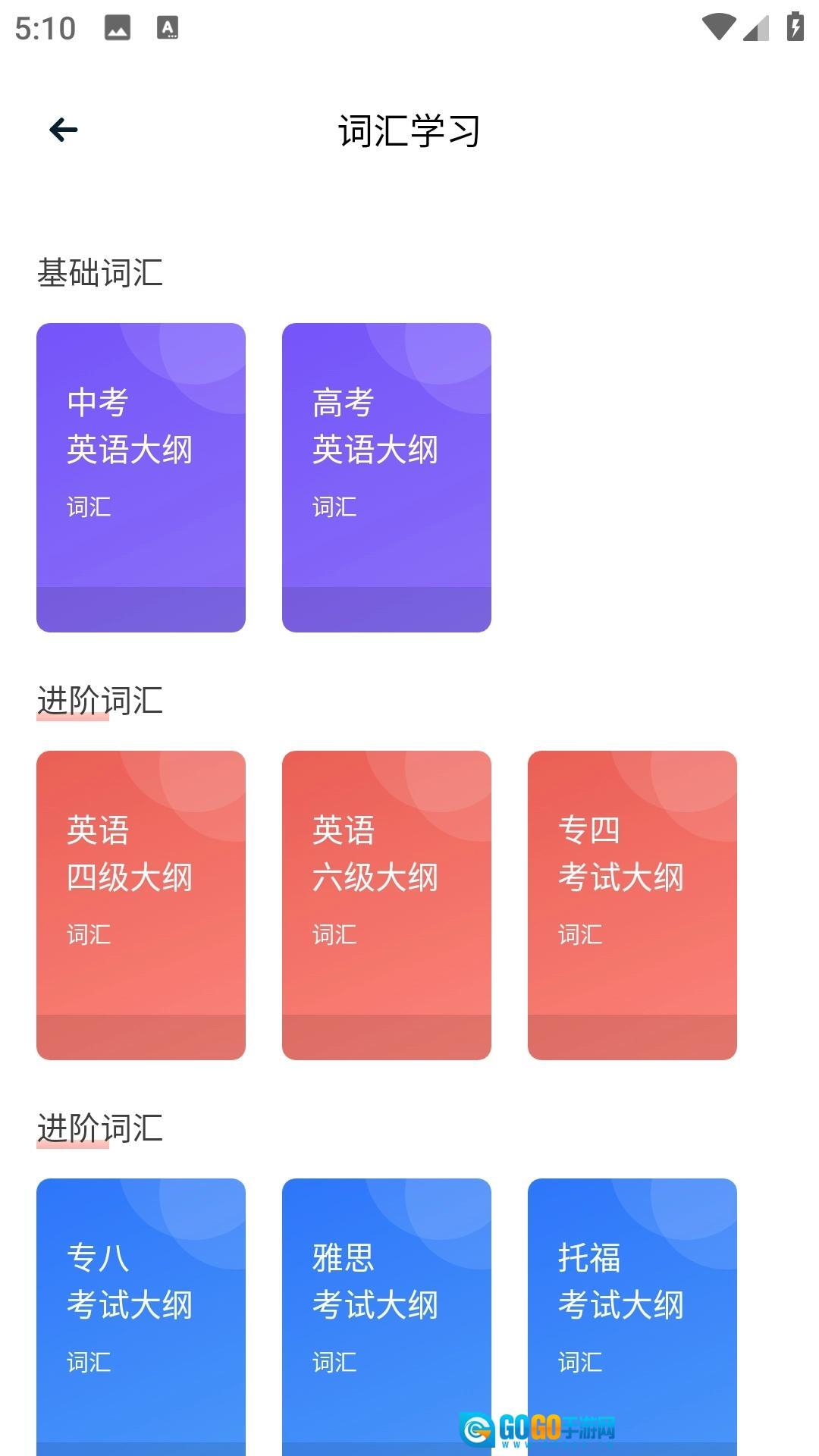 2、点击“词汇学习”图标,挑选想要学习的内容,然后开始学习就可以了。