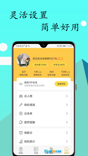 每天使用锁机服务的次数以及累计时长,都会在“锁机达人”中显示出来。
