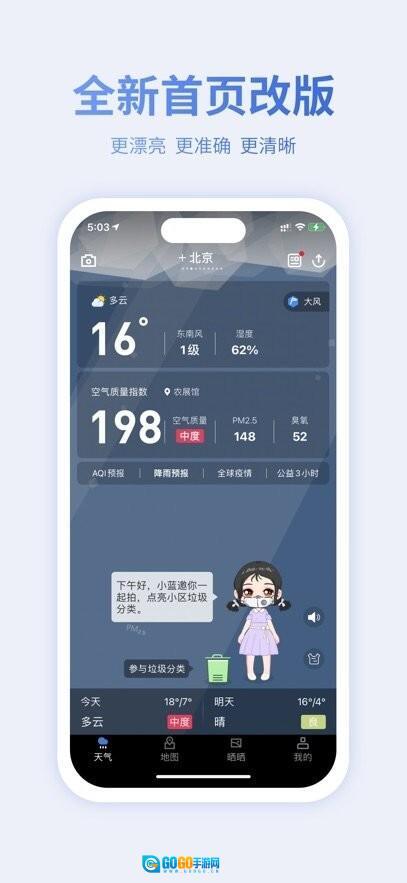 一、动态可视化全球天气与空气质量信息图:依托权威来源,提供精确到区县的天气及空气质量动态预报,助你清晰掌握蓝天与雾霾状况,更有气象灾害、雾霾监测预警及台风动向追踪功能,无论阴晴风雨都能从容应对;同时涵盖口罩佩戴建议、运动指南、花粉浓度提醒等贴心生活服务提示,全方位守护你的健康。