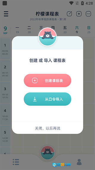 柠檬课程表具备两种课表导入方式,分别为创建课程表和从口令导入。