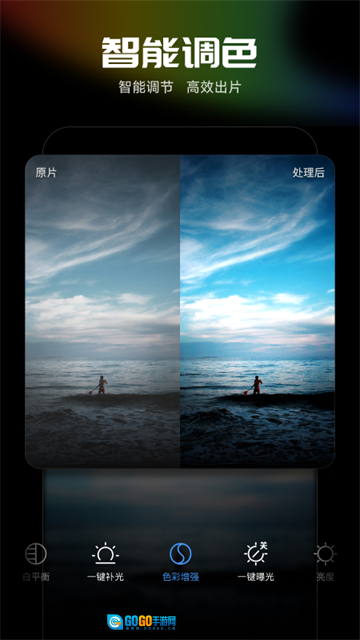 - 专业修图利器,可一键调整阴影、颗粒感、锐化程度、透明度与饱和度