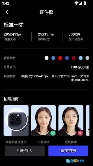 从相册导入照片后即可生成证件照。