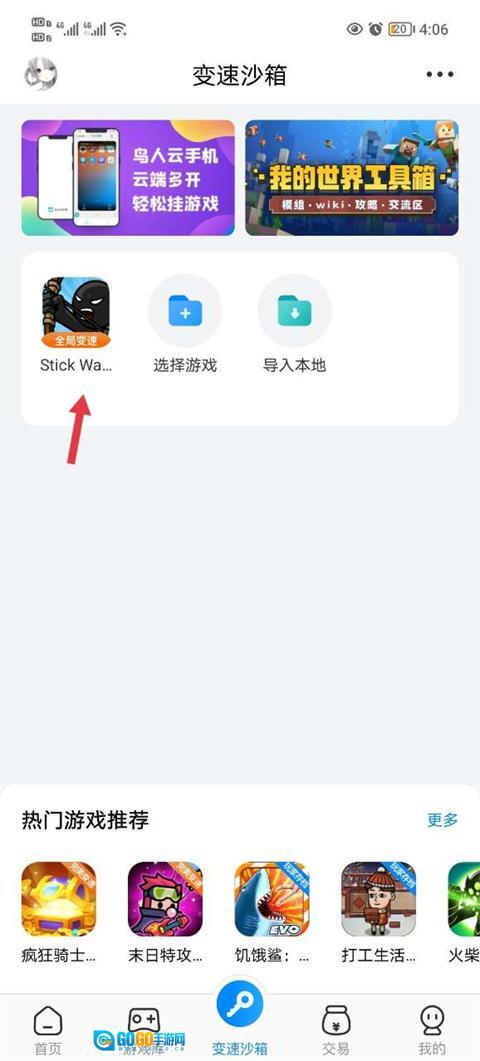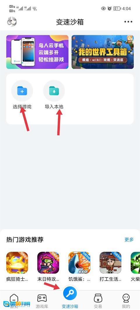 进入软件后点击中间的图标,接着找到“添加游戏”或者“导入本地游戏”的选项。