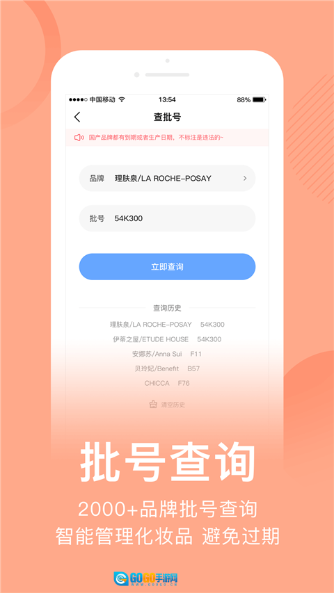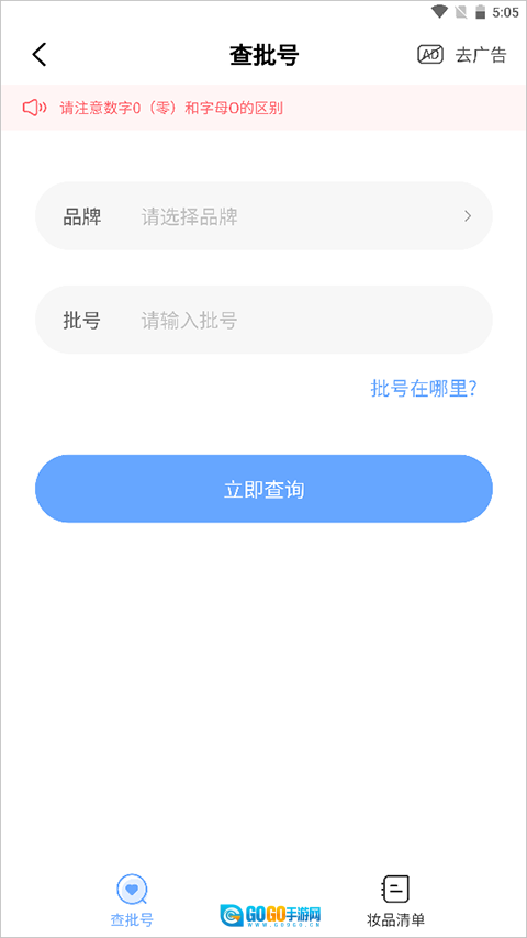 选择品牌,输入批号,点击【立即查询】按钮。
