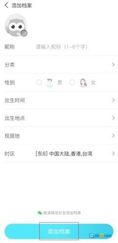 输入待测人员的相关资料,点击“添加档案”按钮,即可直接完成测试。