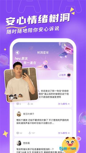 树洞倾诉:披上社交外衣诉说心事,内向的人也能找到专属的宣泄出口,收获一份温暖的拥抱,总有一颗心能与你共鸣。