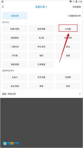 然后在下拉列表里就能看到所有相关订单,我们从中选择【火车票】选项。
