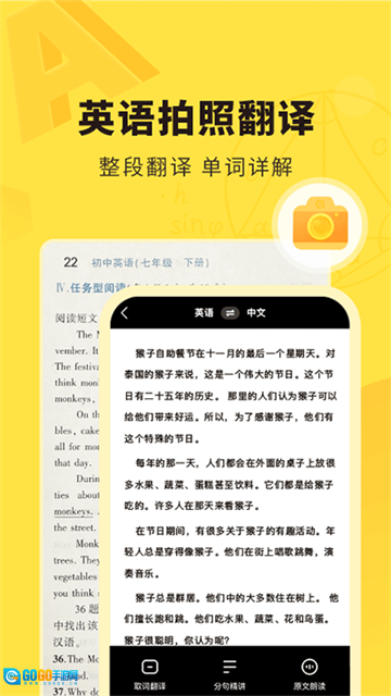 “英语拍照翻译”功能全新上线啦!只需轻松一拍,就能实现整段翻译、取词翻译和原文朗读。“取词翻译”,遇到生词点一下就懂;“原文朗读”,不仅能指导发音,还支持多倍速播放哦~使用快对,精准识别图文内容,翻译既快速又准确,让英语阅读理解变得更轻松!