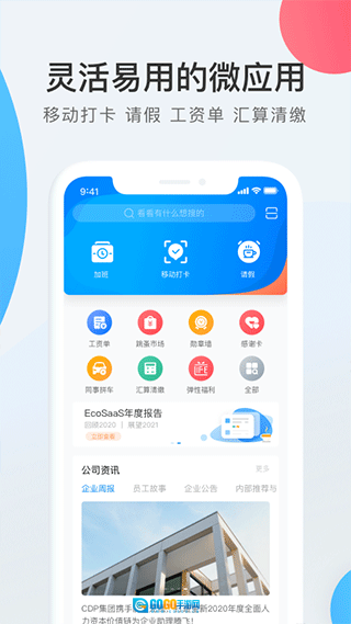 整合考勤、请假、出差、日志记录及资讯公告等多元化功能模块,助力企业高效达成智能移动办公场景的全面落地。