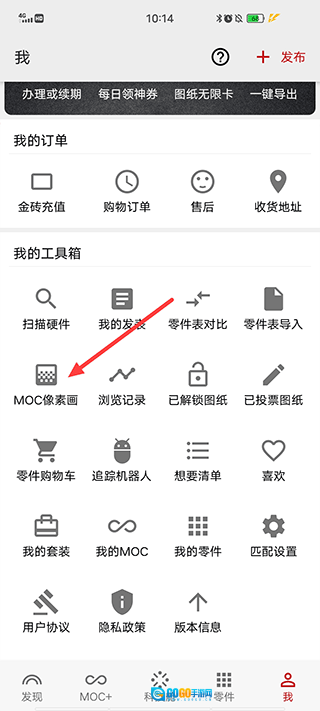 在积木高手“我的”界面点击进入“MOC像素画”;