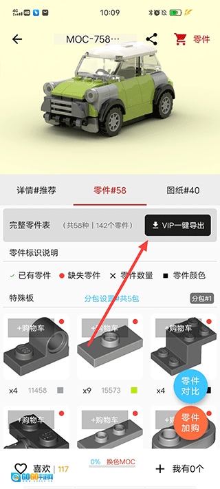 接下来在积木界面中找到并点击“零件”板块,随后选择“VIP一键导出”功能就可以了。