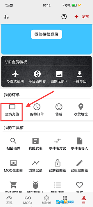 在积木高手“我”的界面点击“金砖充值”;