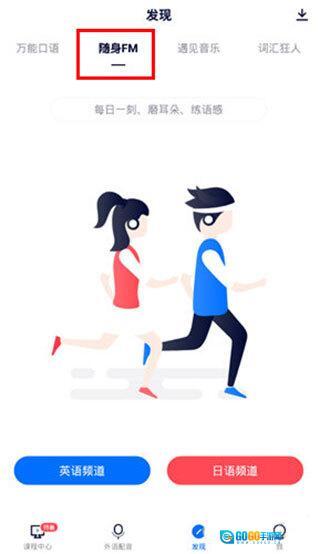如果你经常处于没有网络的环境,依然可以使用日语配音秀。用户只需把软件里的音频下载到本地,就能随时随地学习;若要使用随身FM功能,只需进入“发现”栏目,在随身FM中选择“英语频道”或“日语频道”即可,操作界面如下图所示: