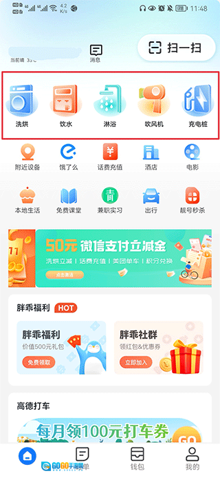 二、选择附近的设备地点,导航到店后点击“立即扫码”,扫描设备上的二维码就能使用设备了。