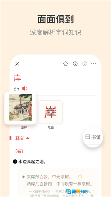 古籍解字词:援引《论语》《诗经》《说文解字》等二十多部经典古籍里的例证,借助这些生动鲜活的例证来理解字词的含义。