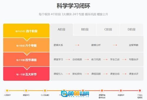 科学学习闭环体系中,每个级别都通过4个阶段、3大模块、24个专题的循环巩固模式,实现能力的螺旋式上升。