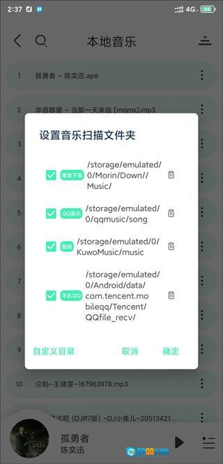 点击扫描设置,可以设置音乐扫描的的文件夹