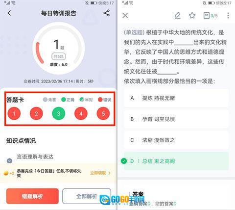 进入答题详情页面,选择对应的题号,就能查看已做题目具体的详细内容了。