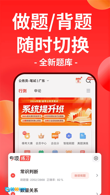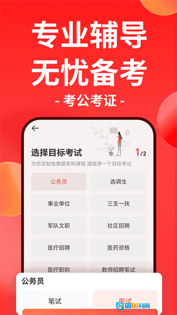 支持公务员、事业单位、教师等各类考试,满足不同用户的备考需求;
