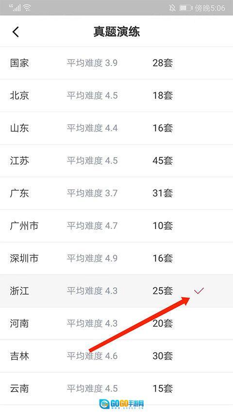 进入真题练习界面,挑选所需的真题,此处以“浙江”为例。