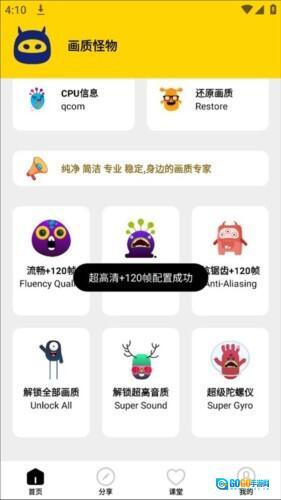 安全绿色,放心使用;更新120帧率极致画质,带来超强体验,更可一键解锁各类画质。