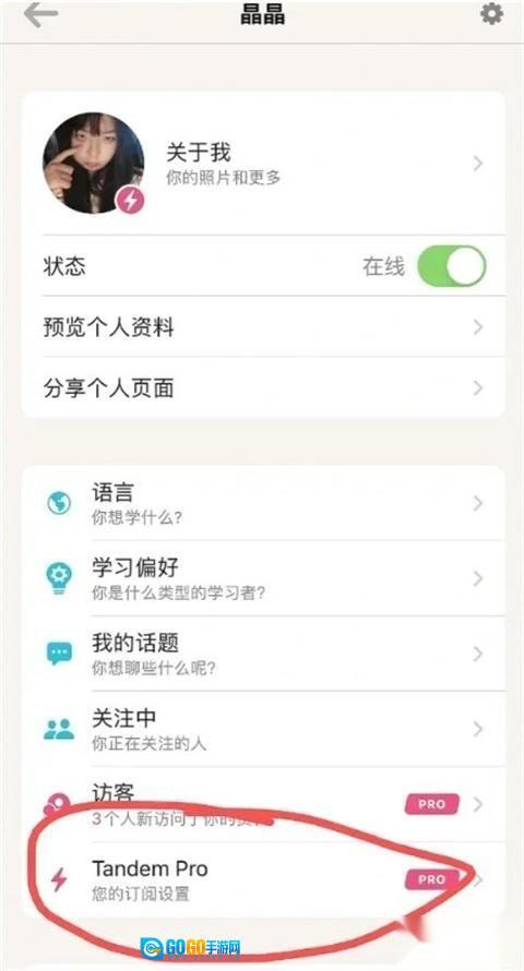 首先进入Tandem的“我的”界面,接着点击页面下方的“Tandem Pro”选项。